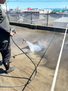 まずは高圧洗浄を行い、汚れや劣化した表層をしっかりと除去していきます。