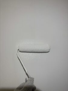 ローラー目が強く出すぎないよう、一定方向で塗り広げ、最後は軽くならすように整えます。